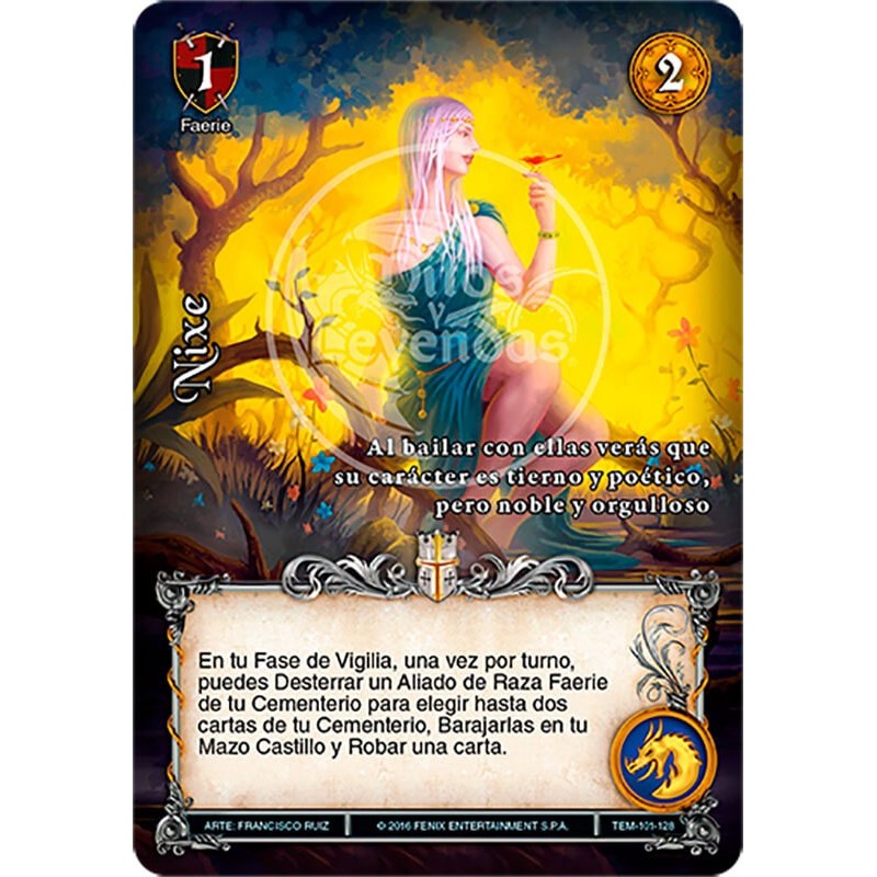 En tu Fase de Vigilia, una vez por turno, puedes Desterrar un Aliado de Raza Faerie de tu Cementerio para elegir hasta dos cartas de tu Cementerio. Barajarlas en tu Mazo Castillo y Robar una carta.